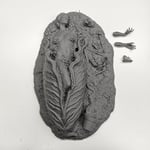 The kit comes with 4 resin 3d printed parts, printed in high quality ABS like resin. Each kit also comes with an acrylic stand so the kit can be displayed vertically or lying down. Larger parts are printed hollow with 2.5mm-3.5mm wall thicknesses. You can choose between 1/8th scale and 1/6th scale versions of the kit. The gray example shown is of the kit cleaned up and primed.